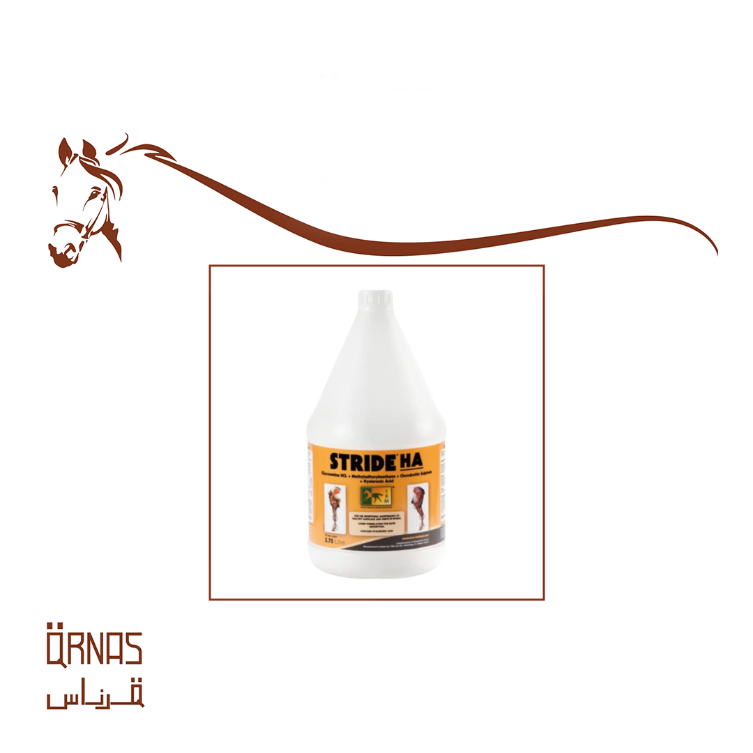 - سترايد اتش أي عبارة عن مكمل غذائي يساعد في الحفاظ على صحة المفاصل لدى الخيول، يحتوي هذا المنتج على (حمض الهيالورنيك/ كبريتات شولدروتن/ جلوكوز امين هيدروكلوريد/ ميثيل سلفونيل ميثان) وجميعها مكونات جيدة تدعم صحة المفاصل وترفع من نشاط الخيل.
